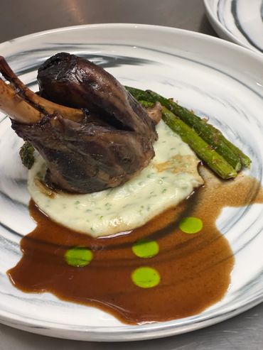 Elk tenderloin, huckleberry compote, grilled asparagus